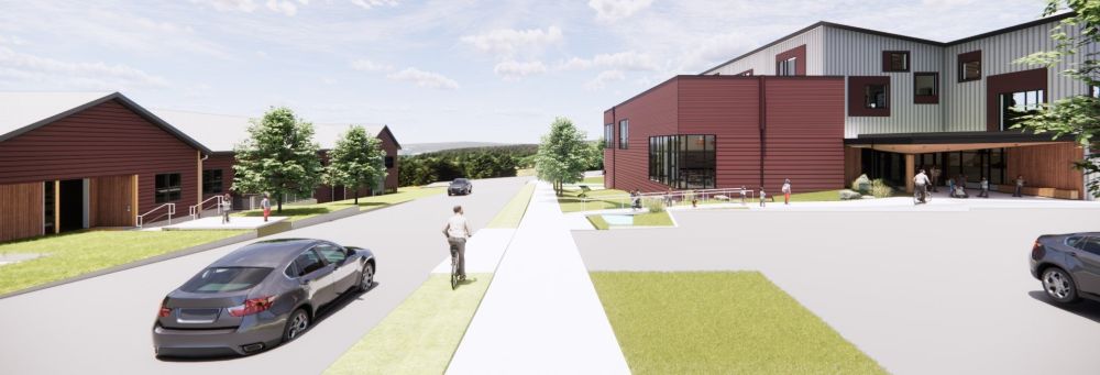 Renderings of the future Early Childhood Center, from east and west