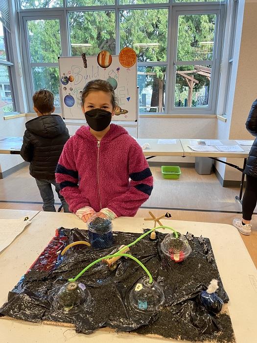 Wrapping up units before Winter Break, both 2nd and 3rd grades celebrated their work in science with culminating showcases! After spending several weeks learning about the solar system, small groups of 3rd graders then thoughtfully designed and built detailed models of habitats on another planet or moon. They had the exciting opportunity to display their projects for their families, faculty and staff, and for each other at their own Science Symposium.
