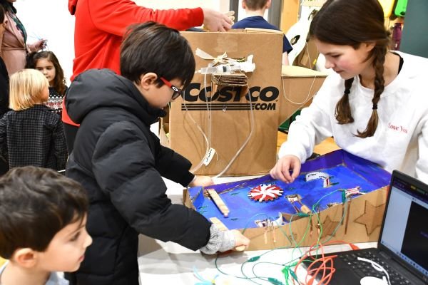 Just before the break, the whole school enjoyed a Winter Carnival, thanks to the efforts of Student Council and our 7th graders! Seventh grade students created and tested "arcade-style" games in Evergreen's BIG Lab makerspace as part of their technology class, and students attending together with their buddy classes had a great time trying them out together. Student Council master-minded the day—it was also school-wide Cozy Day, so plenty of students arrived wearing jammies, and in addition to games, there were crafts, treats, a photo booth, and even an indoor "snowball" fight, with even the head of school participating!