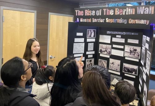 Above right: Sixth grade students worked for months on their National History Day research and presentation or performance pieces, presenting to an audience of dozens of parents/guardians and faculty/staff members.