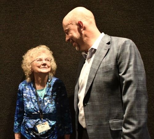 Founder Edith Christensen and current head of school Halsey Bell celebrating Evergreen's 60th anniversary in 2024.
