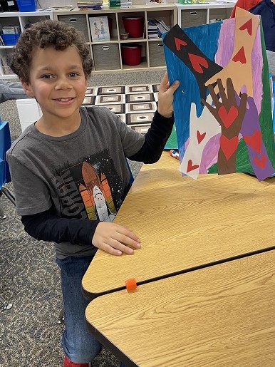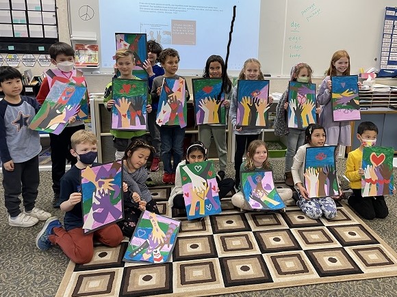 In preparation for Martin Luther King Jr. Day, this 2nd grade class had a thoughtful and involved discussion about Dr. King and some of his impactful quotes. While their teacher had a project in mind, the students had their own ideas. The more they discussed, the more they had to say, and in the end, they lobbied their teacher to let them spend more time and create these larger artworks. They spent that day's choice time working hard, and were proud of the results!