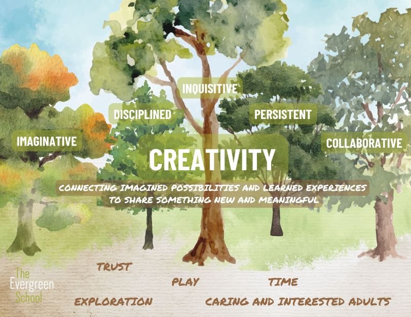 The committee began with a comprehensive literature review and site visits to schools that focus on creativity. Then, committee members progressed to crafting a working definition of creativity for Evergreen, implementing ongoing professional development for all faculty and staff, and working to develop a rubric to assess student creativity in classroom activities.